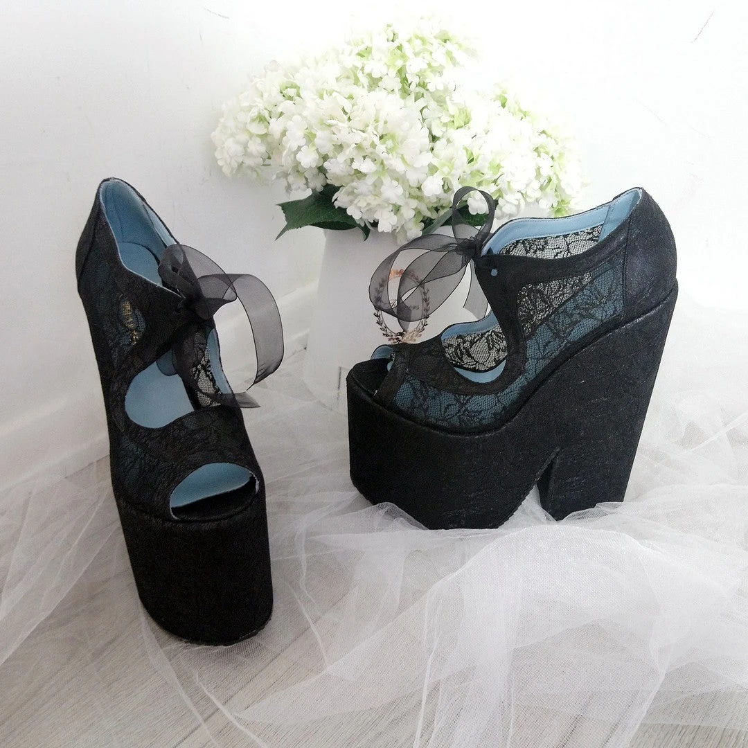 Lace Bridal Platform Shoes. Heels are made from lightweight material.