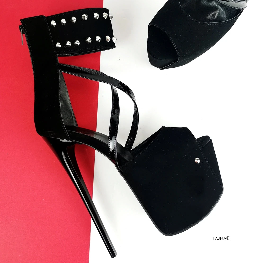 High Heel Spike Studded Platform Shoes. Open Toe. Back Zipper