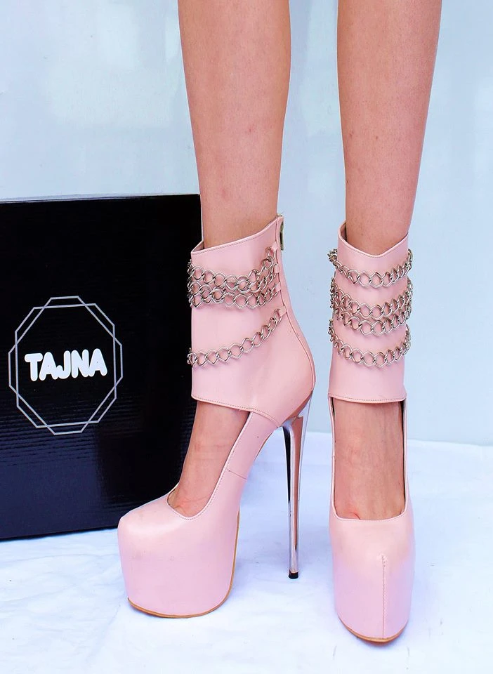 Chain Touch Bootie Light Pink High Heel Platform Shoes