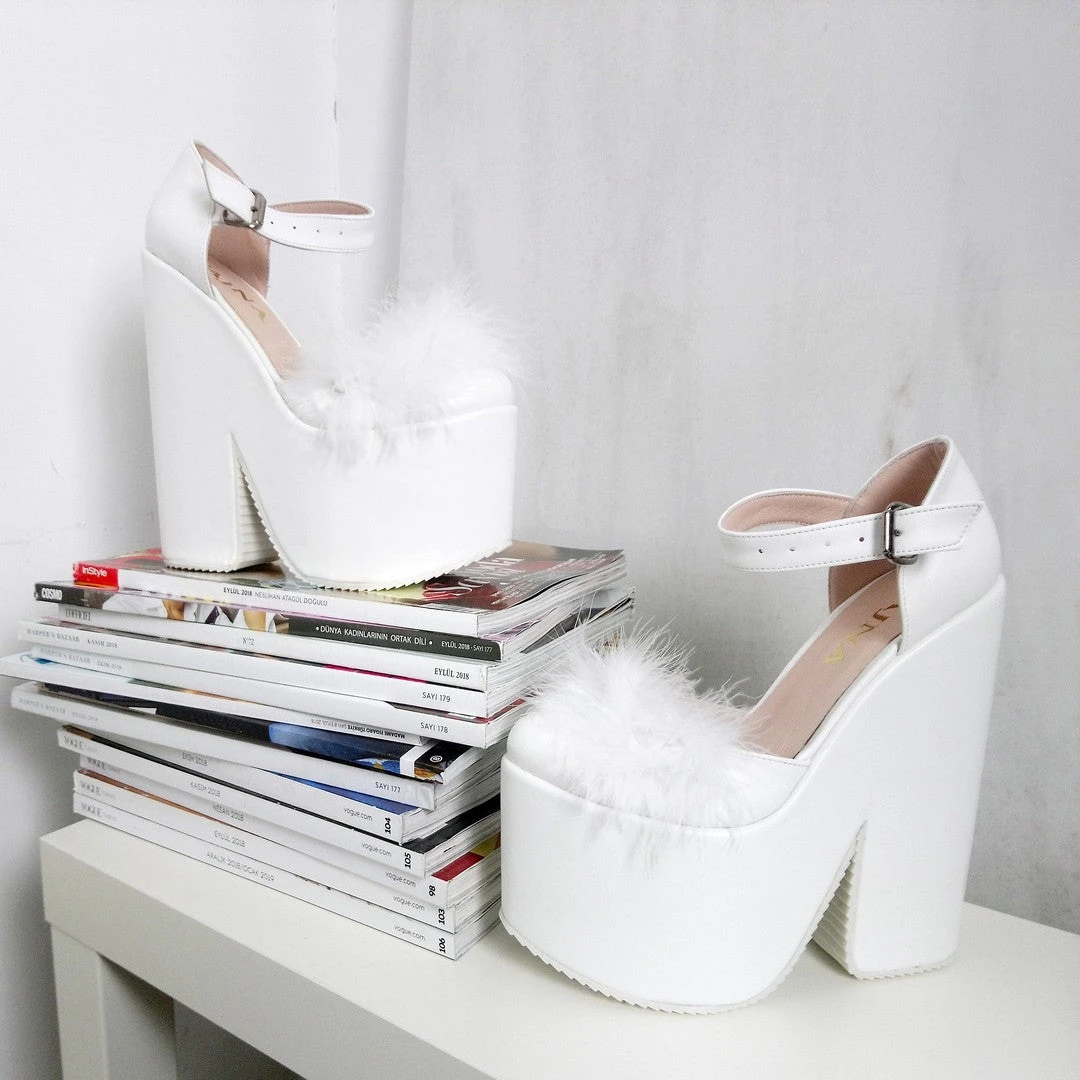 Fury Ankle Strap Platform Shoes. Heels are made from lightweight material.