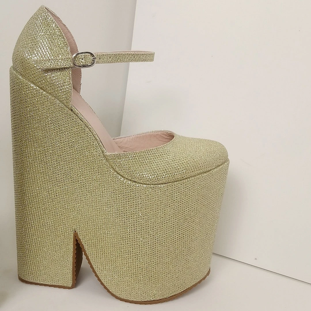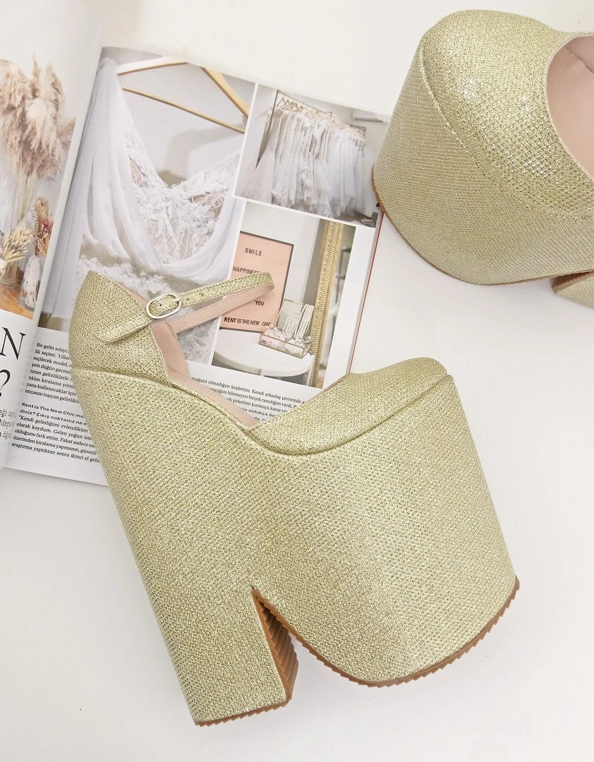 Golden Shiny Textile – Real Leather inside sole