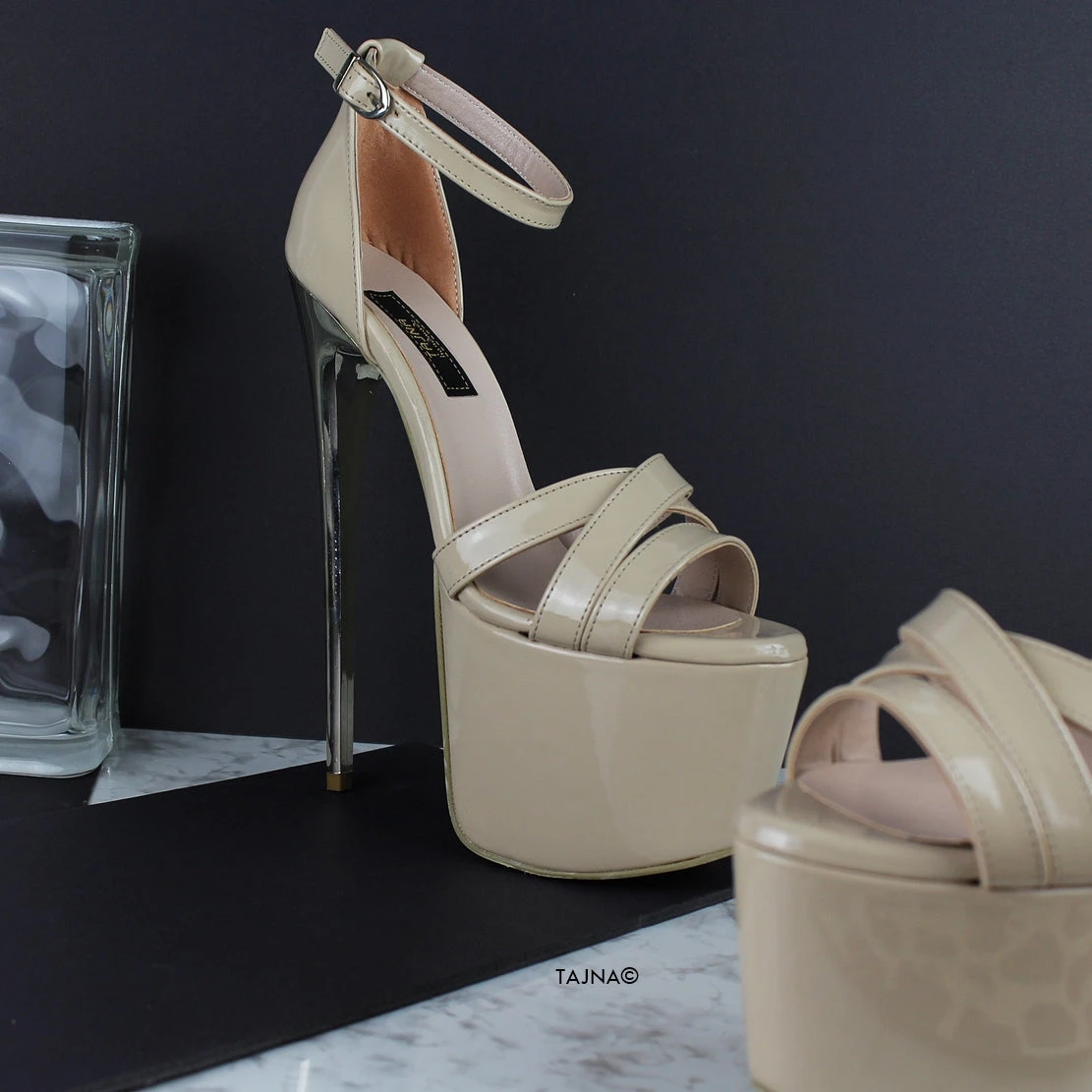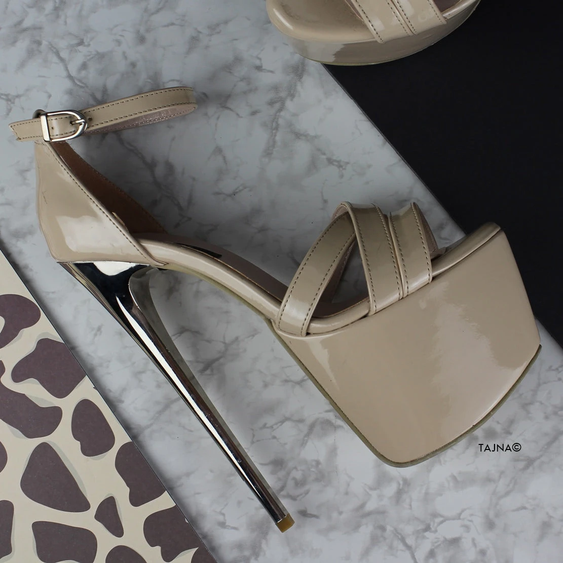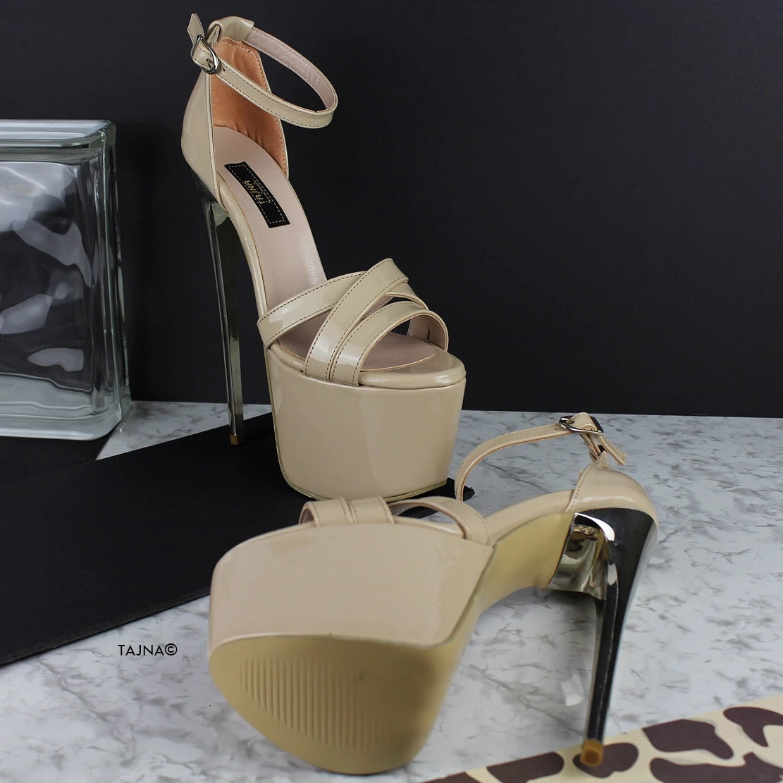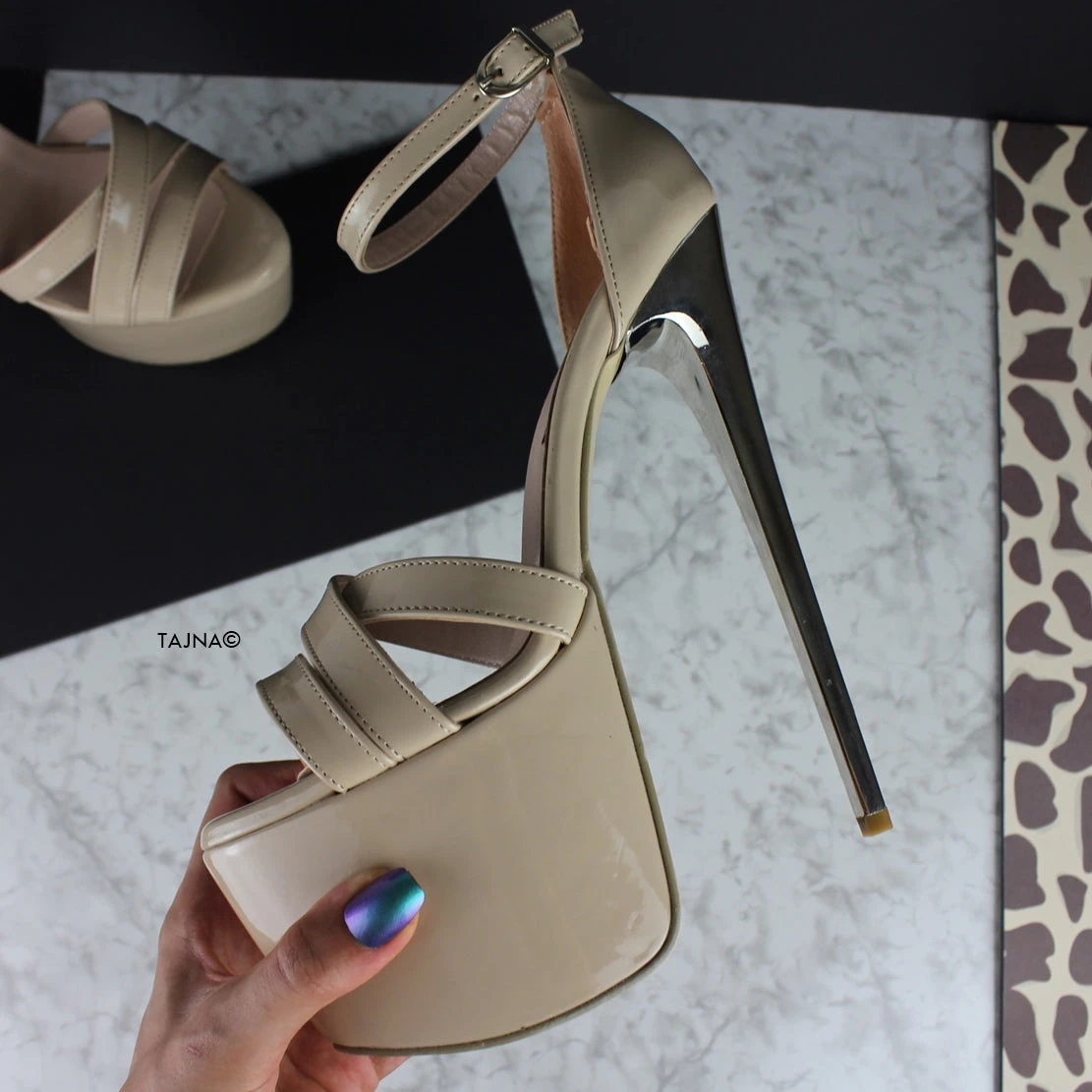 Thin High Heel Hidden Platform Shoes . Metallic Heels