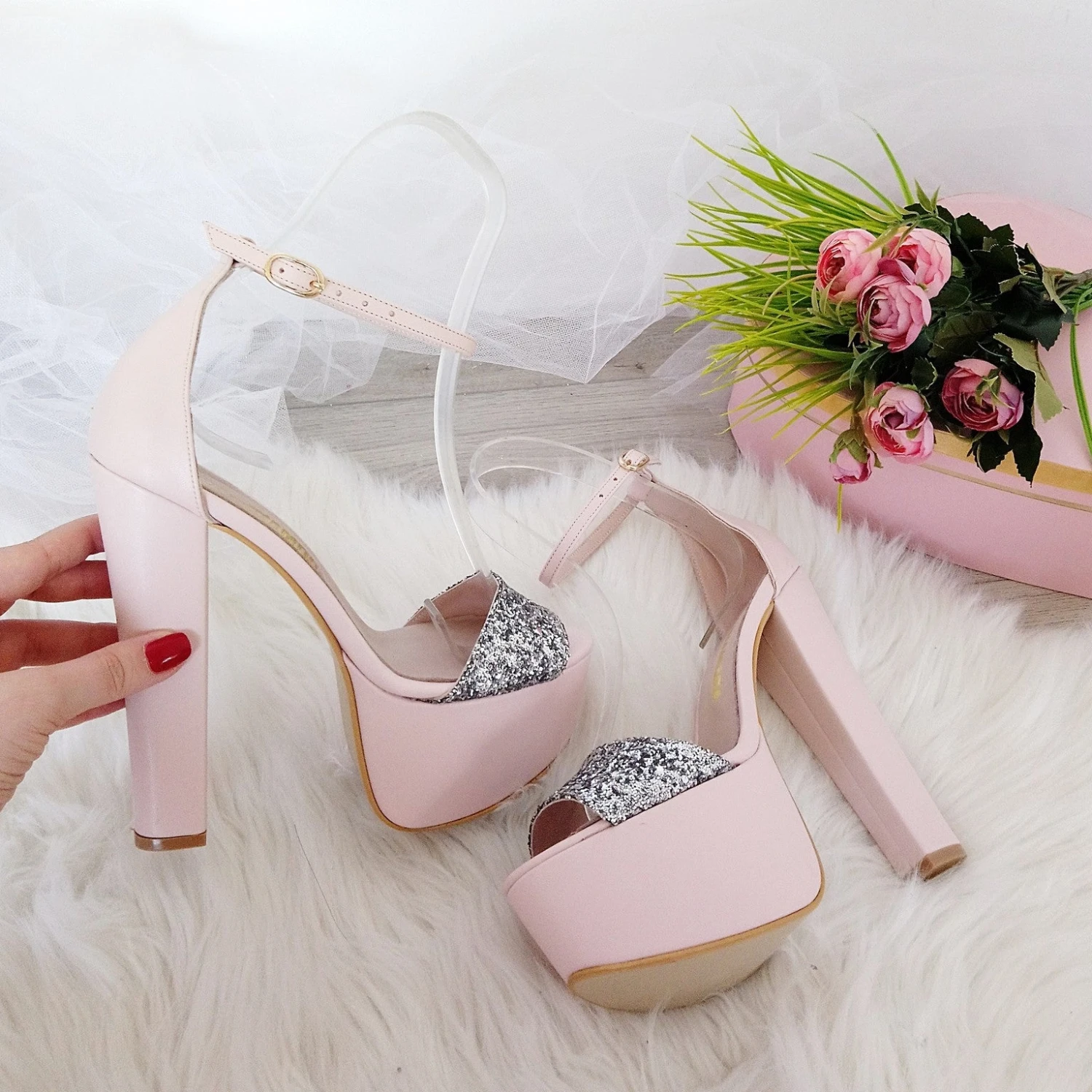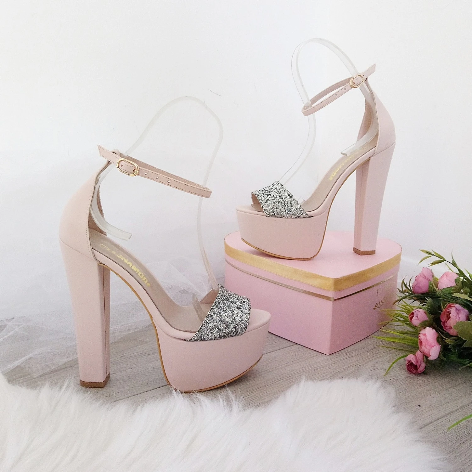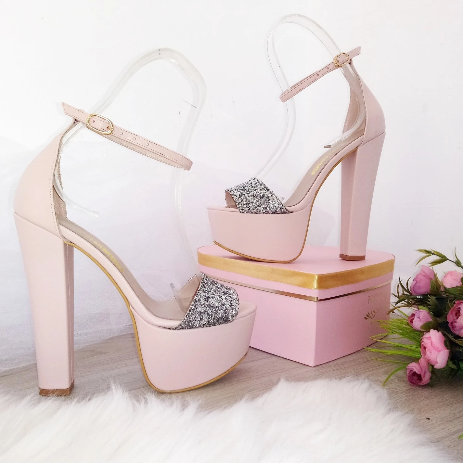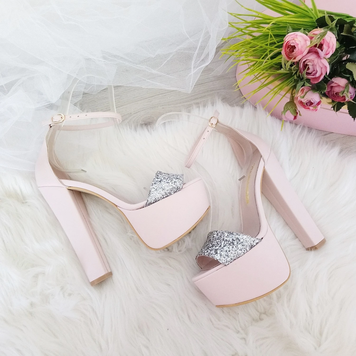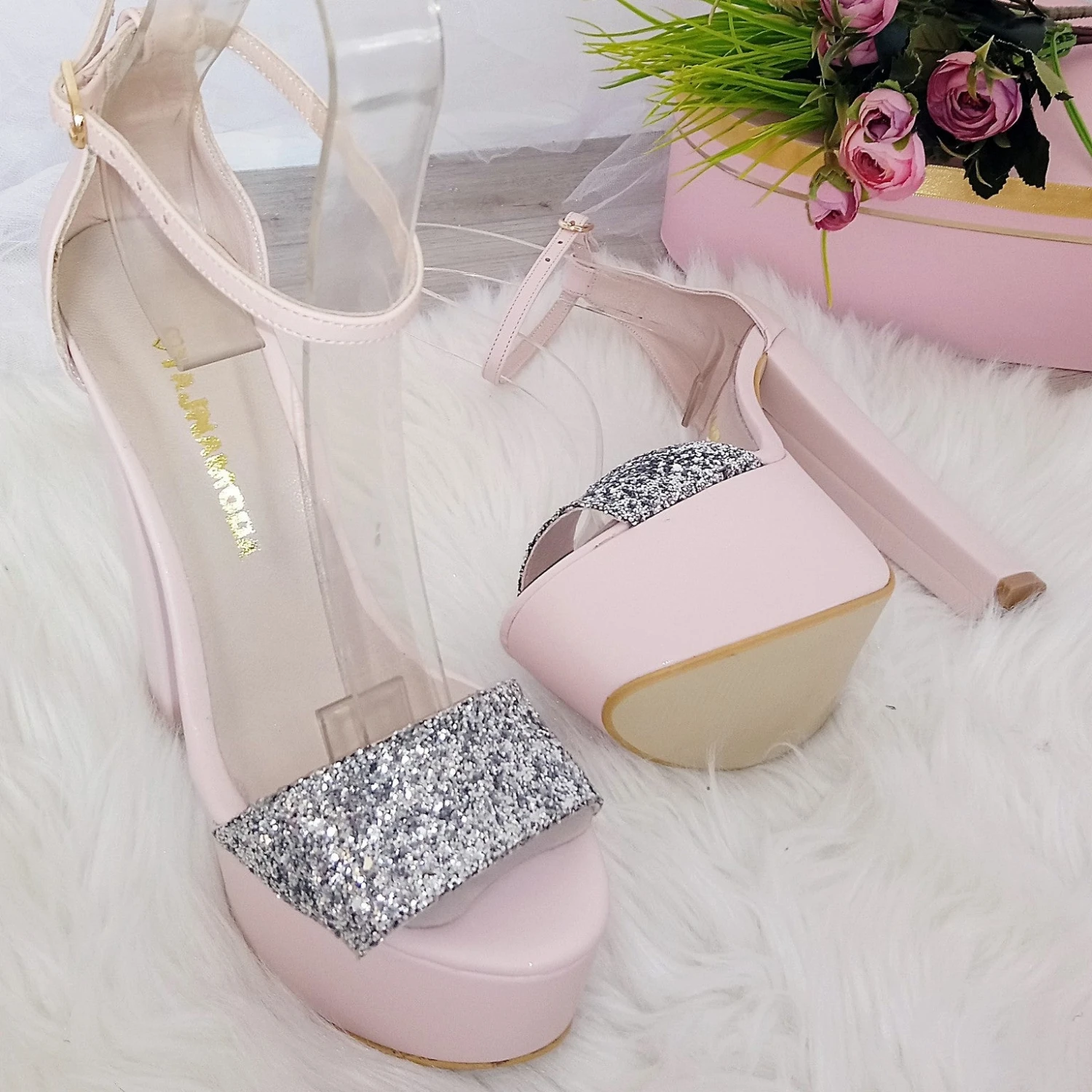 Silver Shiny Detail High Heel Platform Shoes