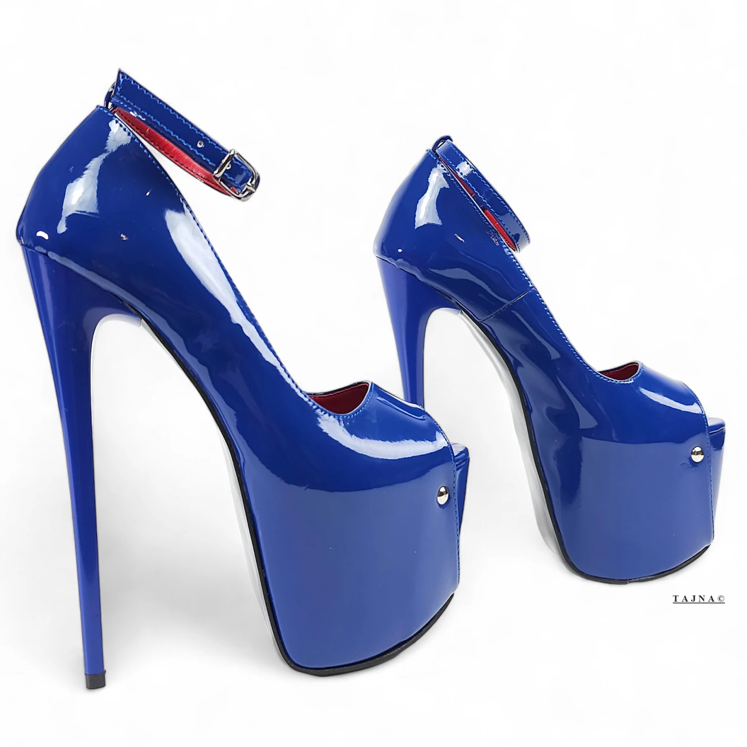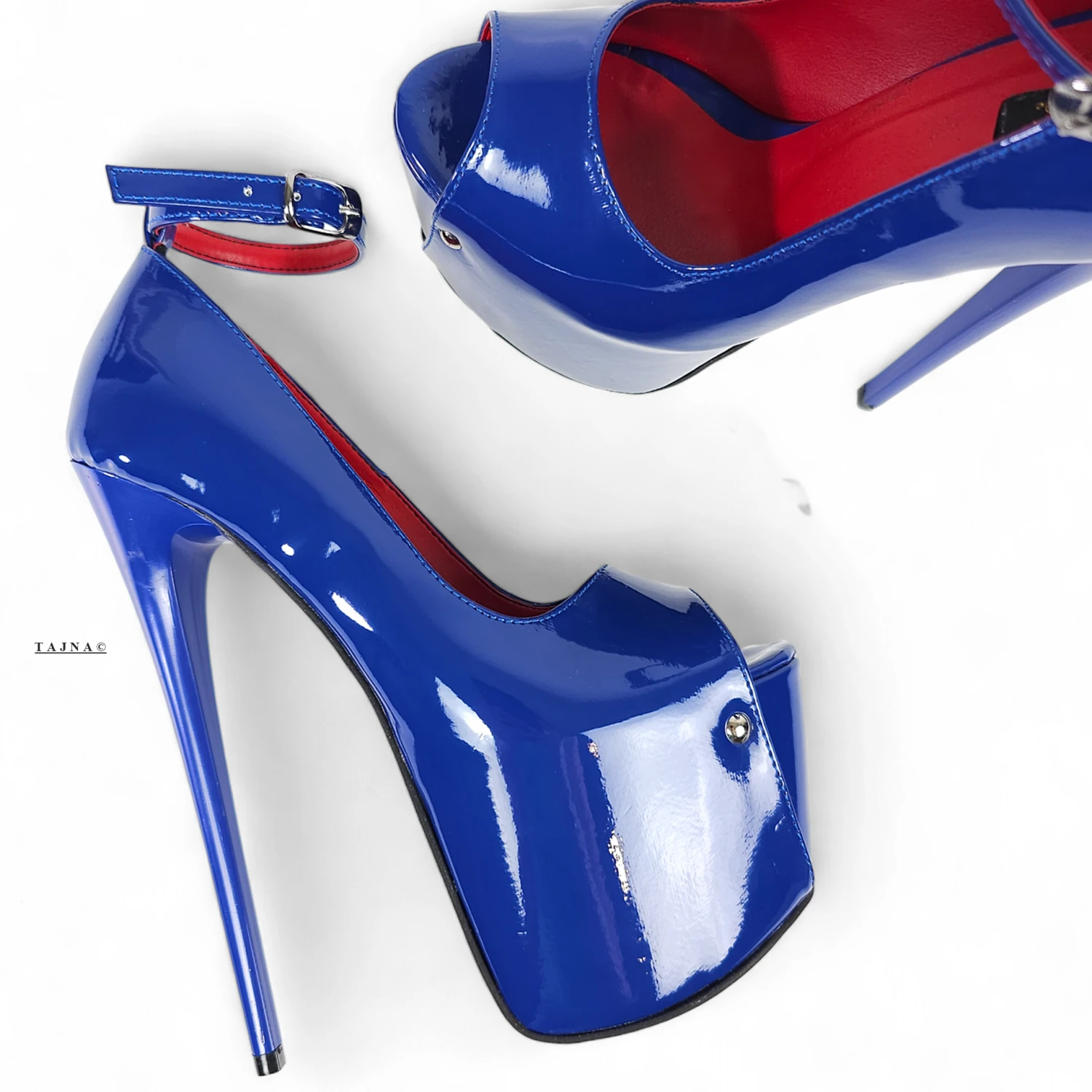 Pencil High Heel Platform Stiletto Shoes. Red Inside with an Ankle Strap