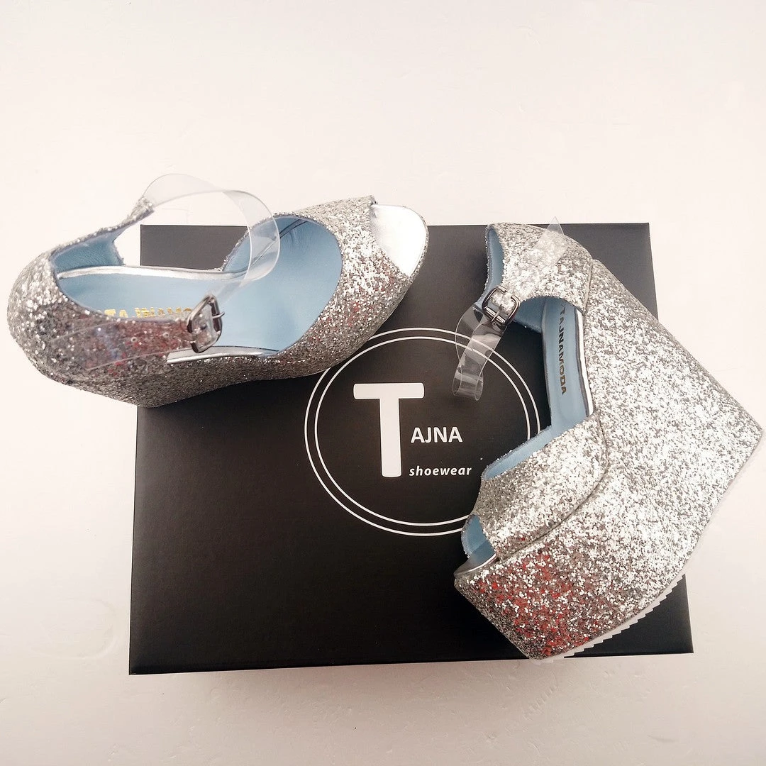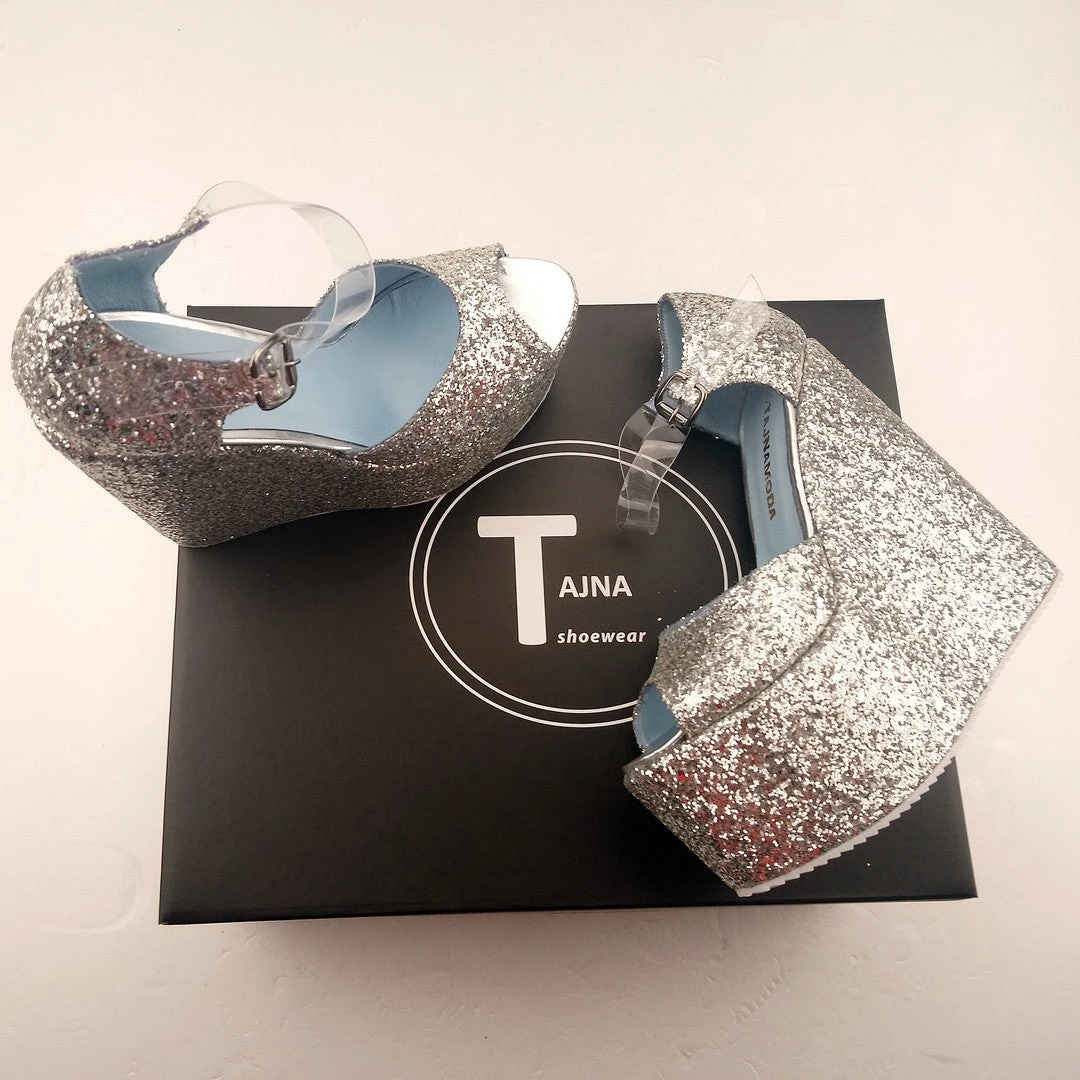 Peep Toe Platform Shoes. Heels are made from lightweight material.