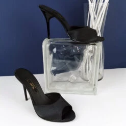 Black Satin Heeled Mules