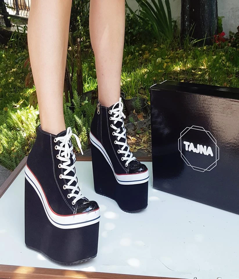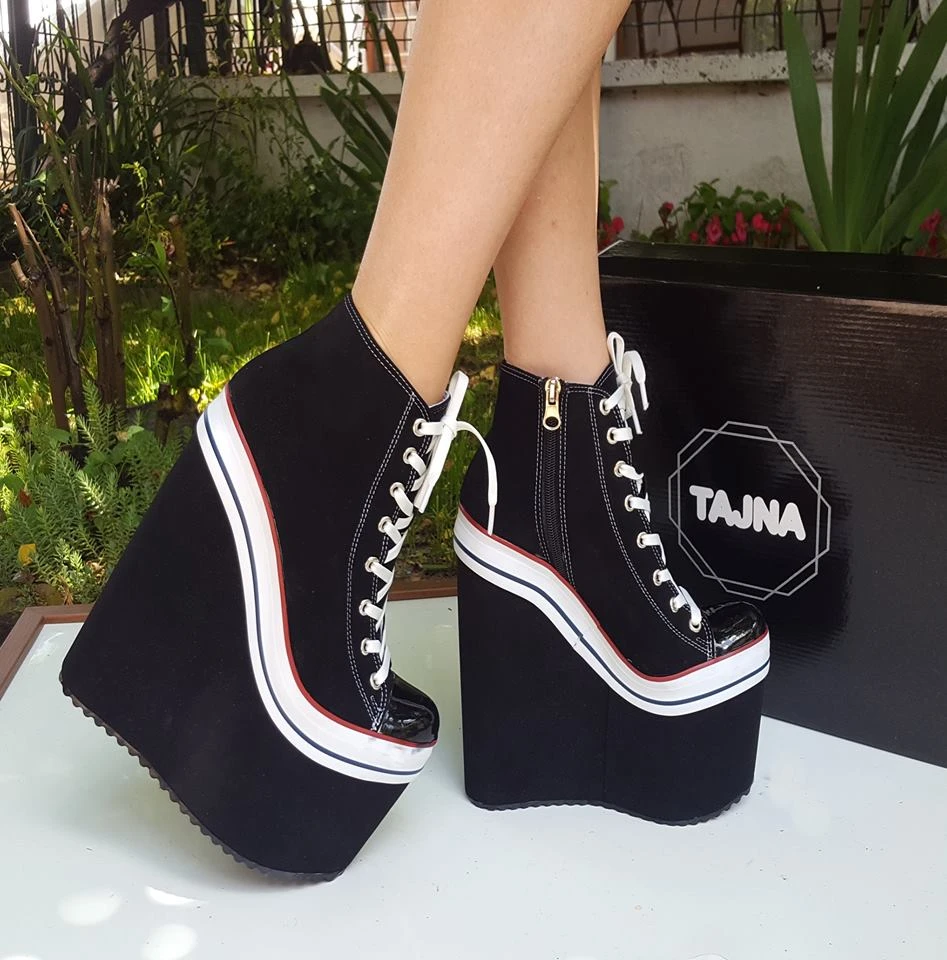 Super High Heel Convers Style Wedges Lace Up Booties New Season