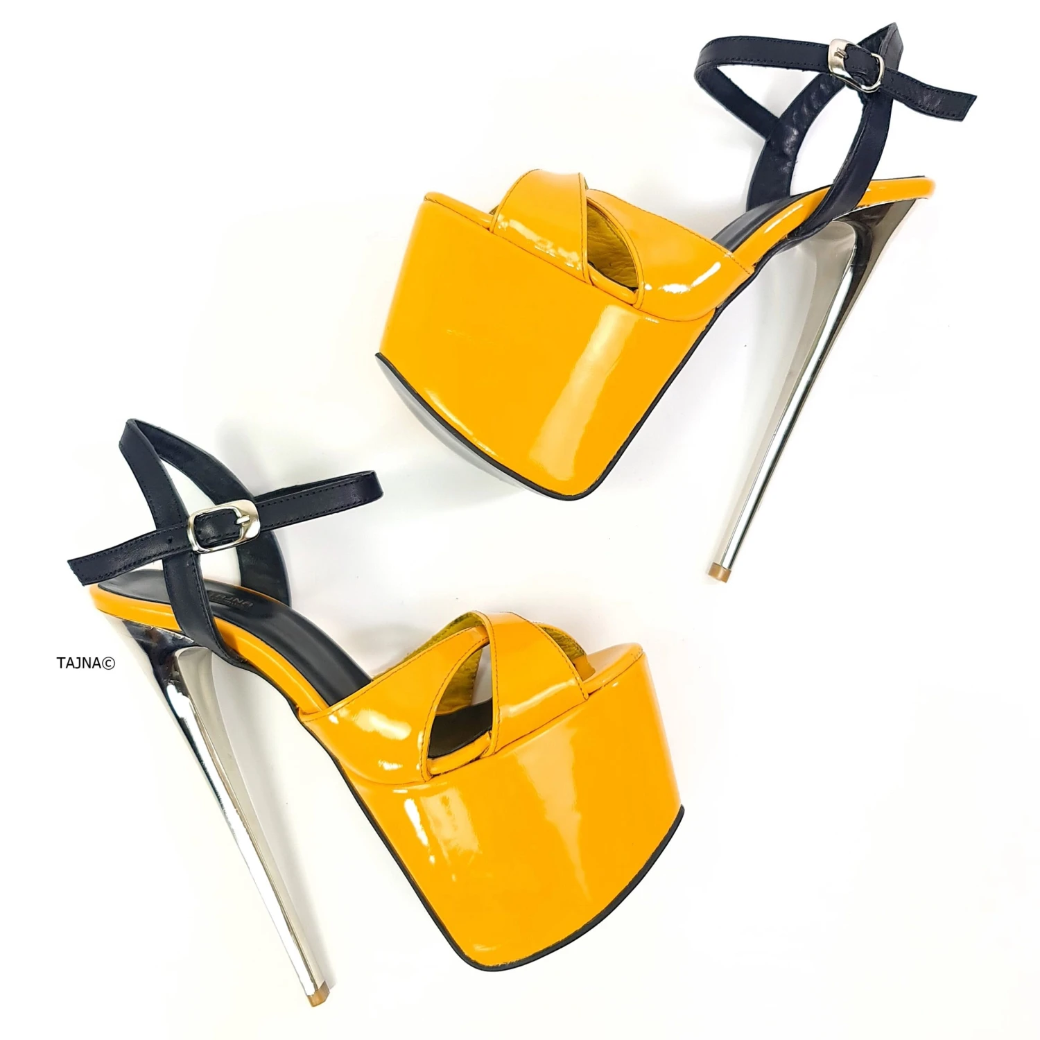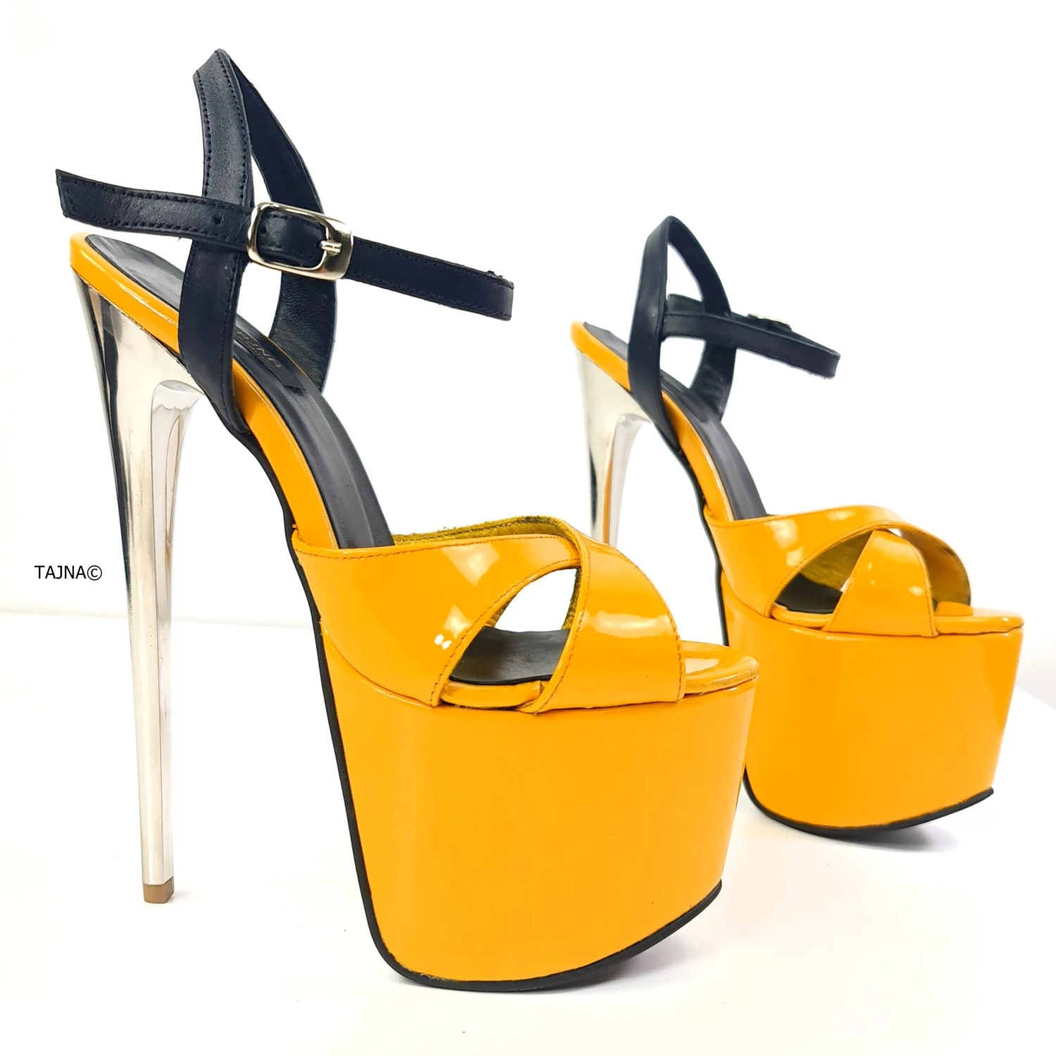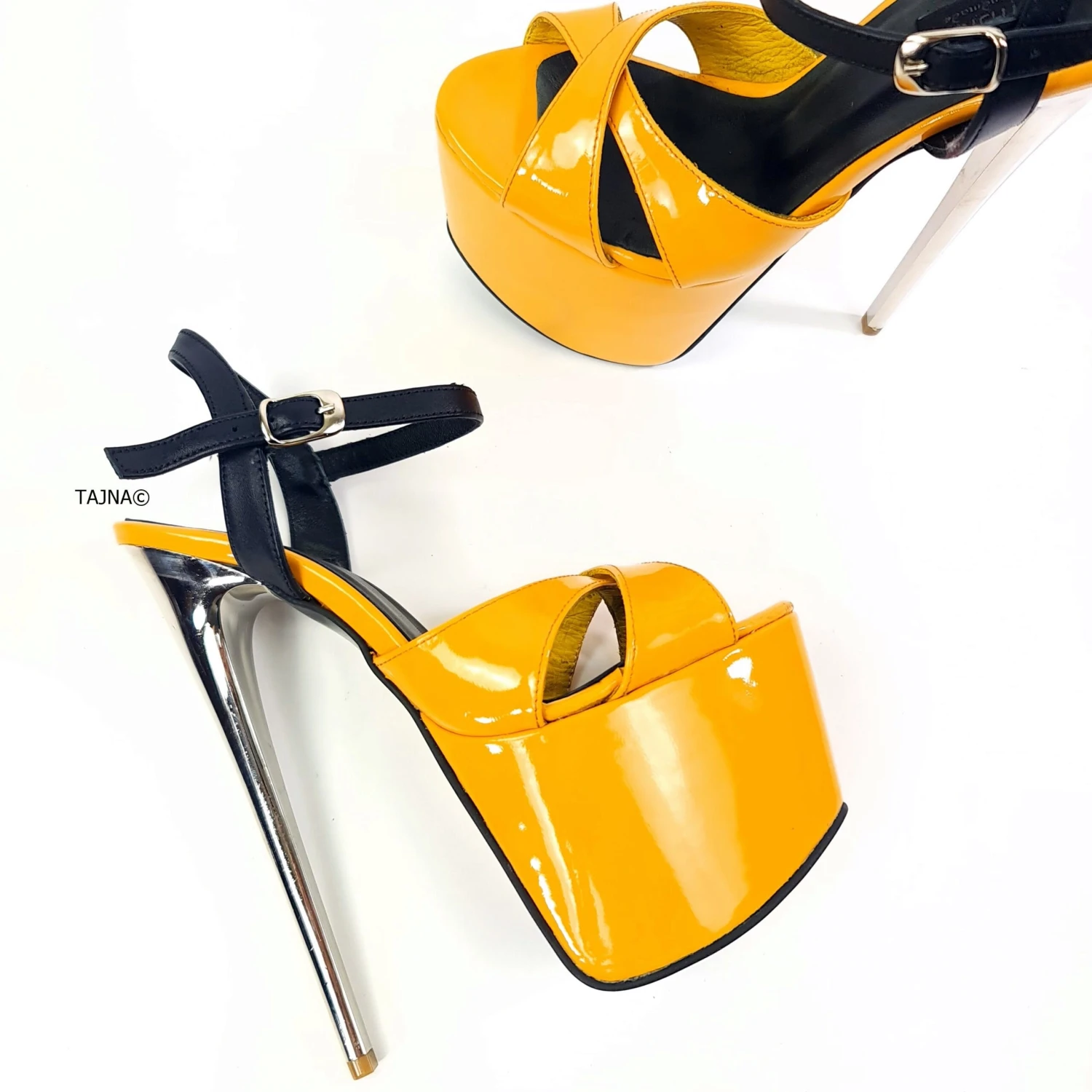 Black Yellow Gloss High Heel Shoes